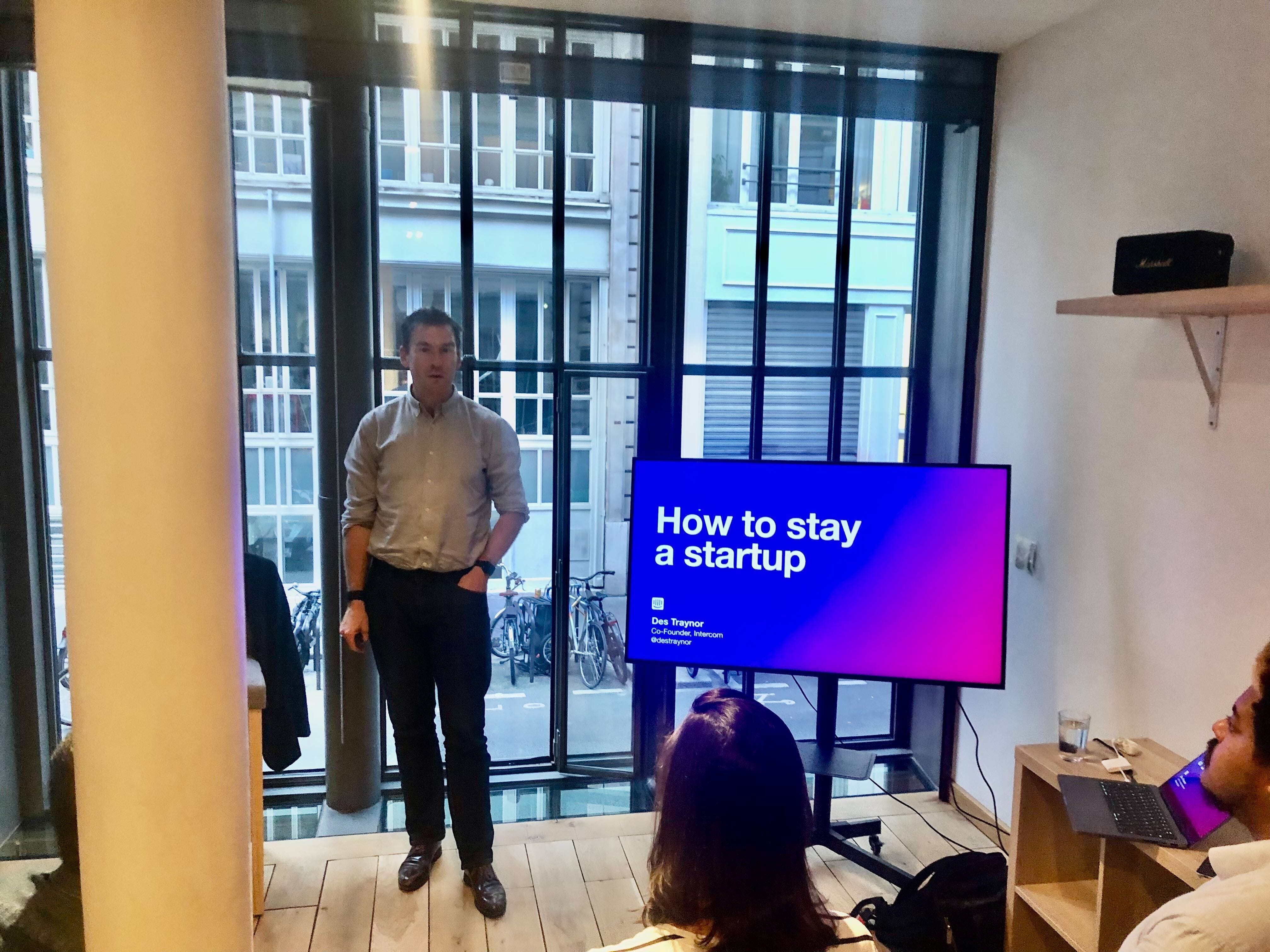 Intercom at eFounders HQ 📢 We were treated to an inspiring talk by Des Traynor, Co-Founder of Intercom at our Paris HQ, who gave his insights into how to stay a startup even as you scale. Meanwhile, Stan Massueras, VP Business Development & Partnerships at Intercom, delved into new acquisition channels, highlighting the importance of partnerships.