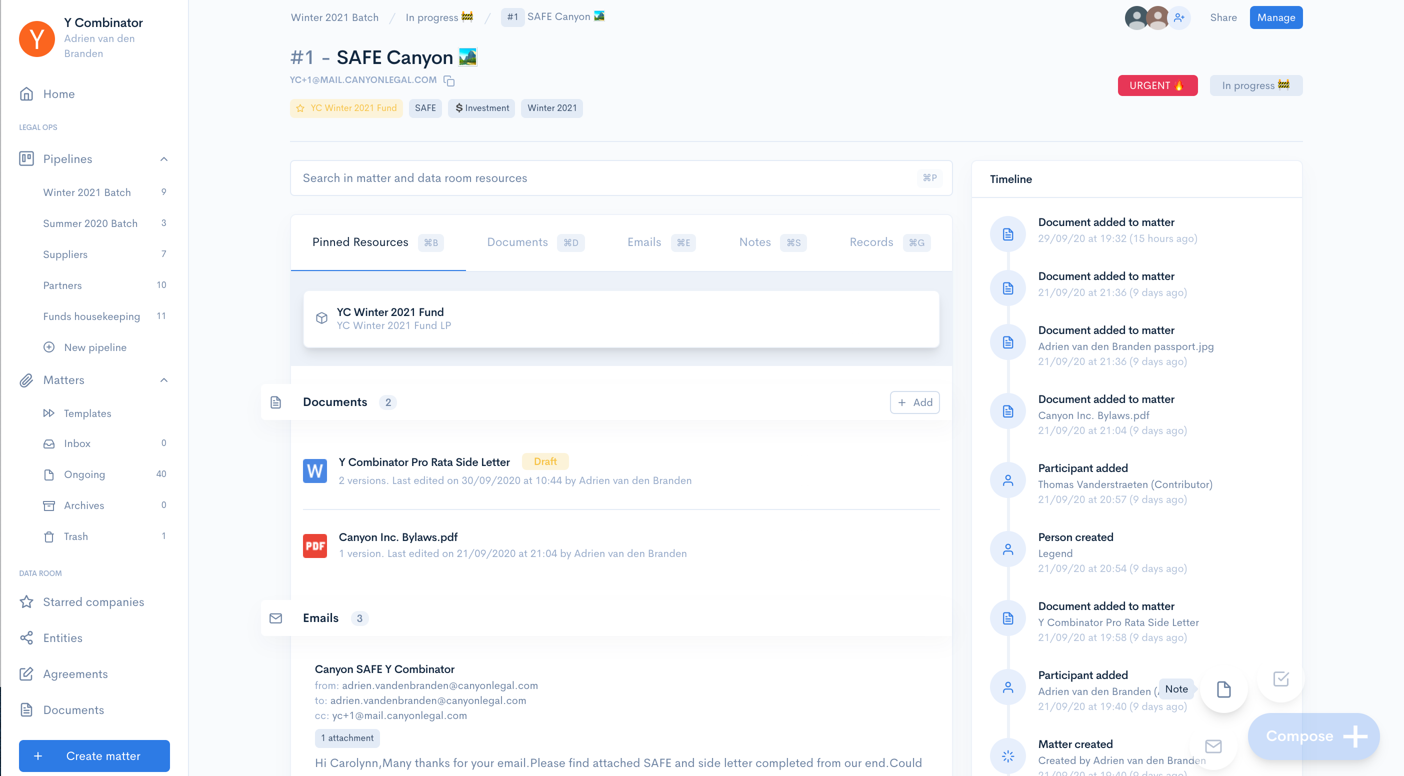 Enter CEO Adrien van den Branden and CTO Thomas Vanderstraeten. A founding team that brings their technical and deep legal industry expertise. With them, we’re building Canyon: the first collaborative platform designed for legal work.