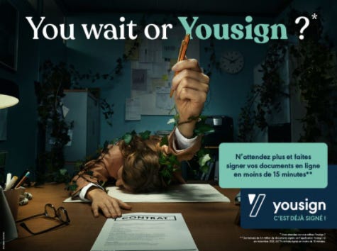 Campaigning 🚇 Fellow Parisian readers, did you spot Yousign’s campaign in the metro? The team behind the leading eSignature solution in Europe went all out and orchestrated a full marketing campaign with metro & video ads. You wait, or Yousign?